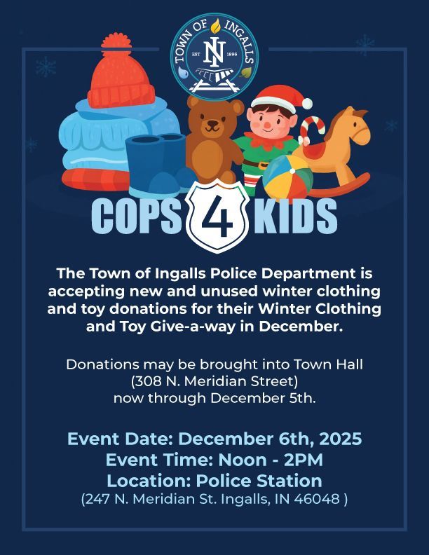 At the same time, the Ingalls Police Department will be hosting a winter coat and toy giveaway at the Police Station. They’ll be providing new coats, gloves, hats, and toys to families who may need a little extra support this season.